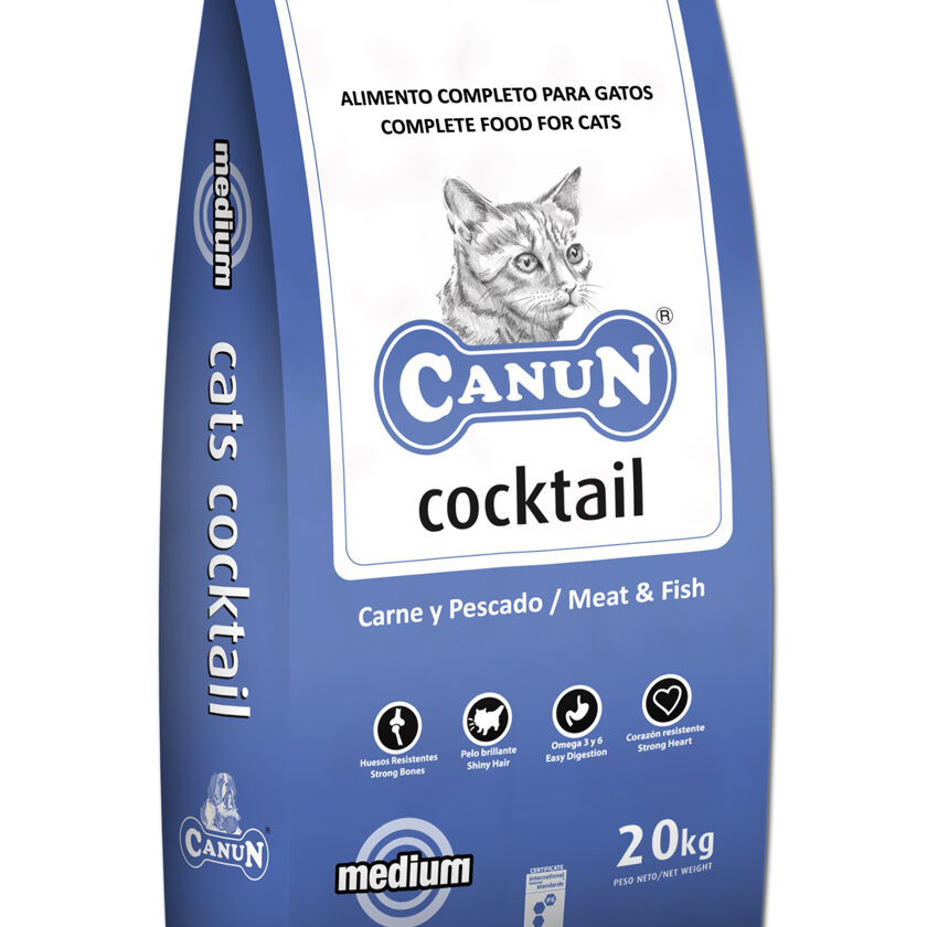 Carne y derivados animales (mínimo pollo 20%), cereales (mínimo trigo hidrolizado 10%), derivados de origen vegetal, legumbres, pescado y derivados de pescado, aceites y grasas (aceite de salmón rico en Om3), levaduras, sustancias minerales.